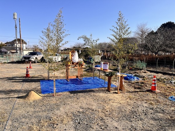 2月9日 この冬一番の冷え込みの日(午前7時時点で-5°C)、午前9時30分より当社倉庫新築工事の地鎮祭を執り行いました。